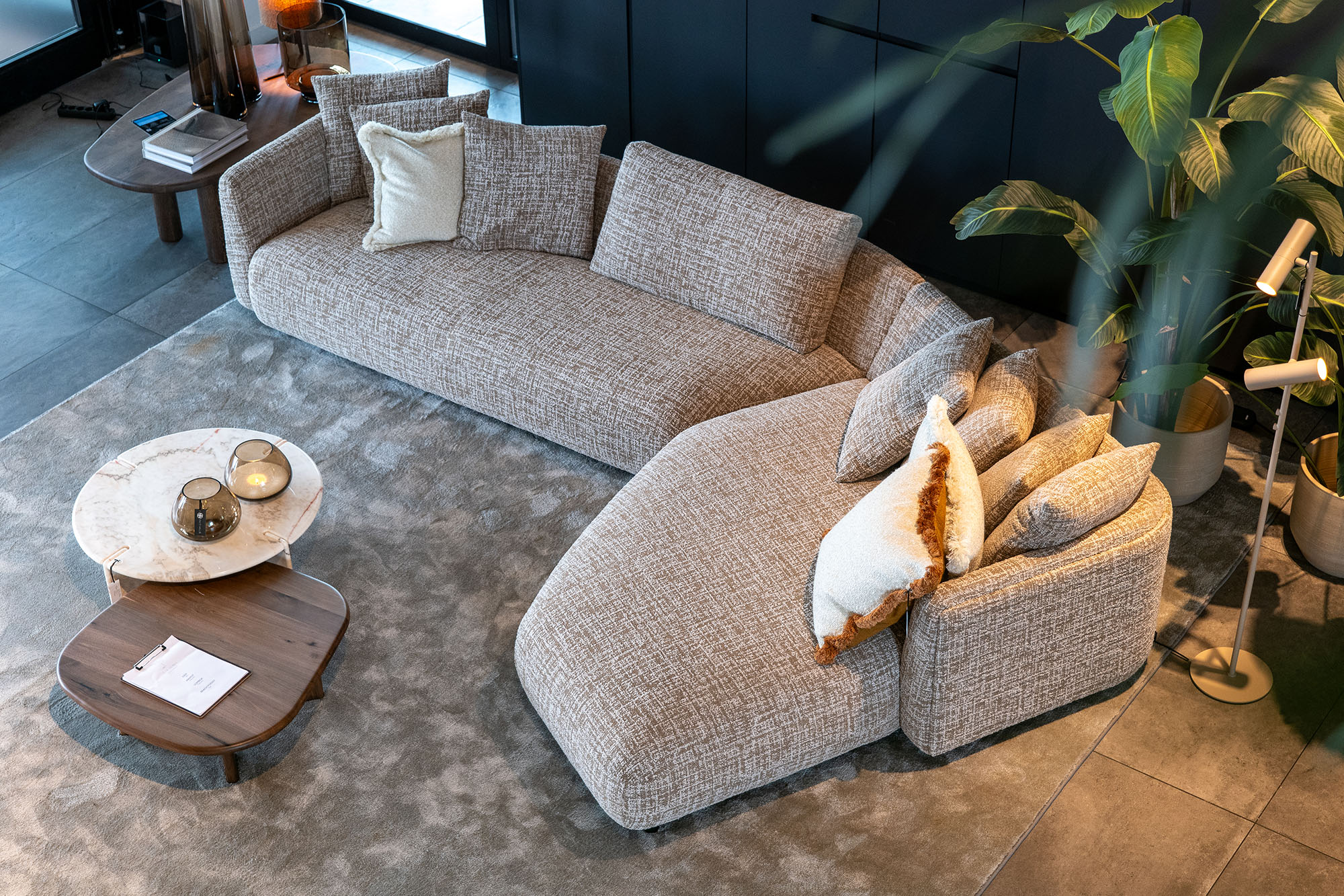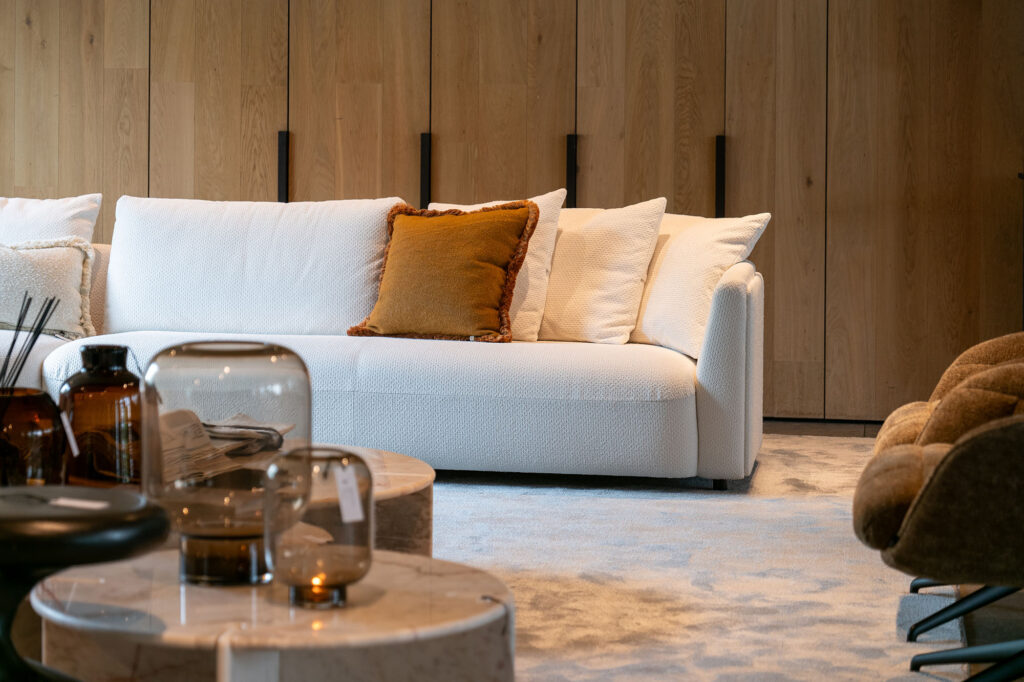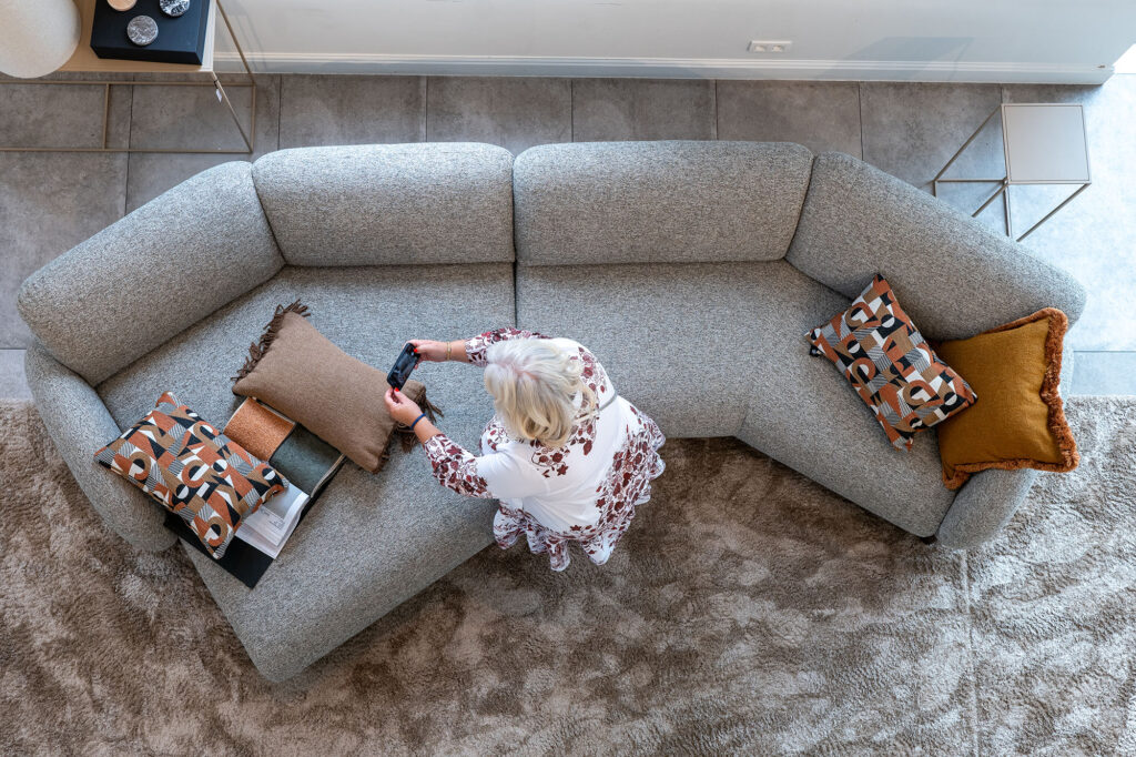 Warum der Titel „Nicht sitzen”? PassePartout stellt doch (Sitz-)Möbel her? Stimmt, aber ein Sofa ist nicht zum Sitzen da. Um den niederländischen Keynote-Speaker Jos Burgers zu zitieren: „Ein Baumarkt verkauft keine Bohrmaschinen, sondern Löcher.” Hm, das gibt zu denken. Aha, genau das will der Kunde! Übertragen wir diese Erkenntnis auf unsere Branche, dann ist ein Sofa nicht zum Sitzen da. Aber wozu dann? Um die Zeit mit Familie und Freunden zu genießen, zu chillen und Netflix zu schauen, den verliebten Teenager zu trösten, den Momenten des Lachens und der Tränen Zeit zu gönnen usw. Ein Sofa ist so viel mehr als nur ein Sitzmöbel, es steht für ein Erlebnis, für das Leben. Das Gleiche gilt für andere Möbelstücke. „Die entscheidende Frage lautet: Was will der Kunde konkret? Wenn man das weiß und kommuniziert, gelangt man ein gutes Stück weiter! Deshalb investieren wir maximal in die Atmosphäre des Standes, eine luxuriösere Ausgabe des Coffee Table Books (mit Leinenumschlag!) und – megawichtig – 3D-Designtools. Der Verbraucher ist digital so versiert, dass man als Profi nicht zurückstehen darf!“ Ok, dieses Upgrade war zu erwarten.