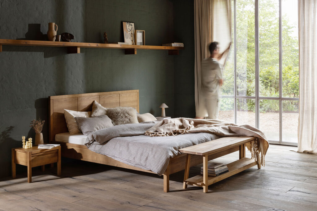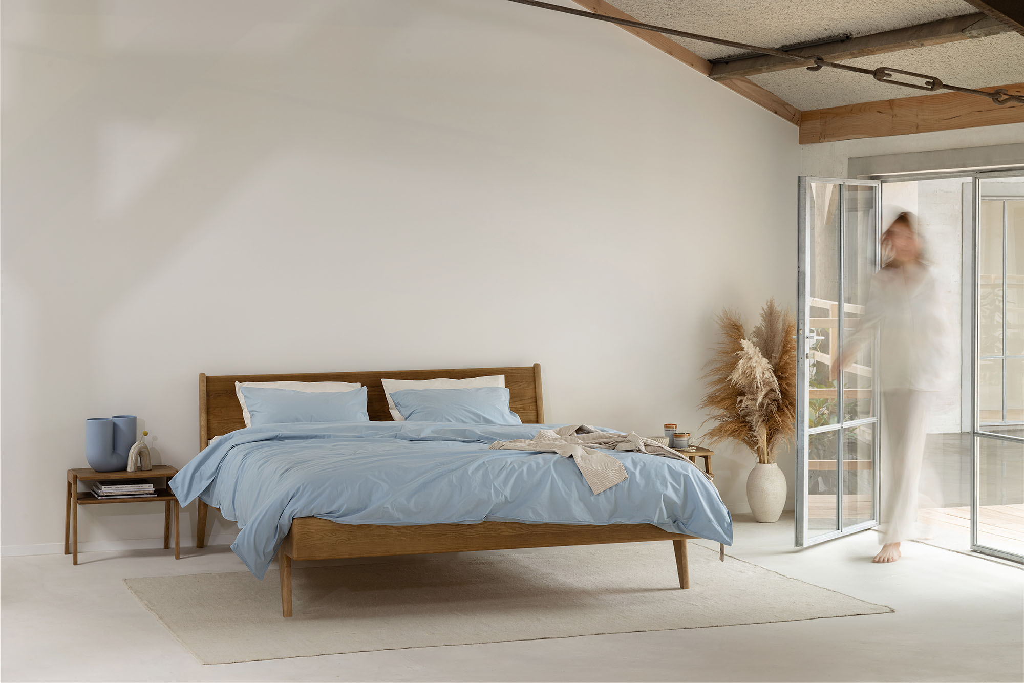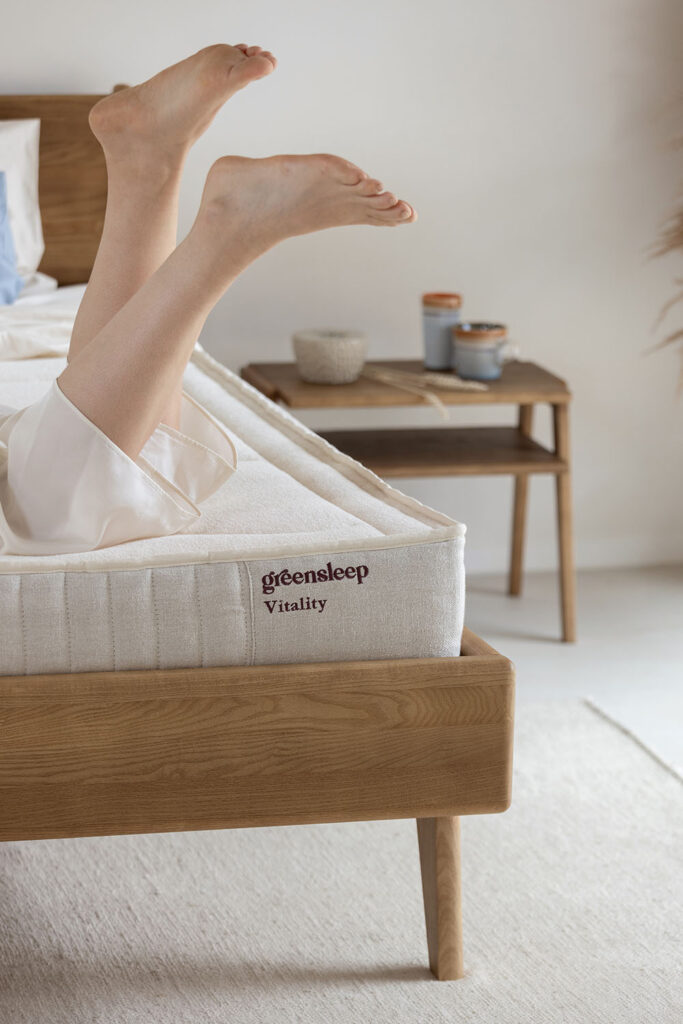 Bei Greensleep laufen ökologischer und ergonomisch durchdachter Schlafkomfort parallel. „Aus Verantwortungsgefühl für die Gesundheit der Menschen und der Natur.“ Man muss kein Experte sein, um zu verstehen, dass Chemikalien schädlich sind. (Der enge Kontakt mit Körper, Kopf, Nase, Mund im Bett …) Ein Gamechanger ist nötig, um synthetische Materialien zu verbannen. Für die Matratzen nur reine Rohstoffe wie Texeler Wolle, Naturlatex, Seide, Flachs. Für die Betten kein Metall und nur eine Holzsorte. Um genau zu sein: Esche aus dem westlichen Balkan. Gründe dafür: eine durchgängige Logistikkette, ein relativ kurze Strecke auf der Straße, das Ganze innerhalb Europas. Die Option Walnuss ist folglich Esche mit Walnuss-Finish. Keine künstlichen Farbstoffe, sondern natürliche Farbpigmente. Respekt für die Natur beinhaltet ein langlebiges Design. Man schaue sich die neuen Modelle für 2025/2026 an wie Pure (auf minimalistischen Füßen) und Core (mit organisch geformtem Kopfteil).