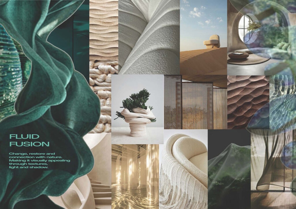 Der Fluid Trend folgt dem Flow der Natur. Ihr Interieur atmet Natural Vibes, die lebendige Dynamik der Natur. Organische Linien, die fließend ineinander übergehen, sich gegenseitig ergänzen – in einer unendlichen lebendigen Bewegung. Bildlich in Dessins dargestellt, ausgedrückt in Reliefstrukturen, greifbar gemacht in Texturen. Die sich kräuselnden Wellen im Wasser, die Sandwellen am Strand, in der Wüste. Die rauen Strukturen von Baumrinde, von Wind und Wetter geformt, Schicht für Schicht, Tag für Tag. Die Silhouetten von natürlich gewachsenen Blättern und Blüten, von natürlich geformten Steinen und Felsen. Das faszinierende Spiel von Licht, Dunkelheit und Schatten, das ewige Wechselspiel von Wind und Wasser.